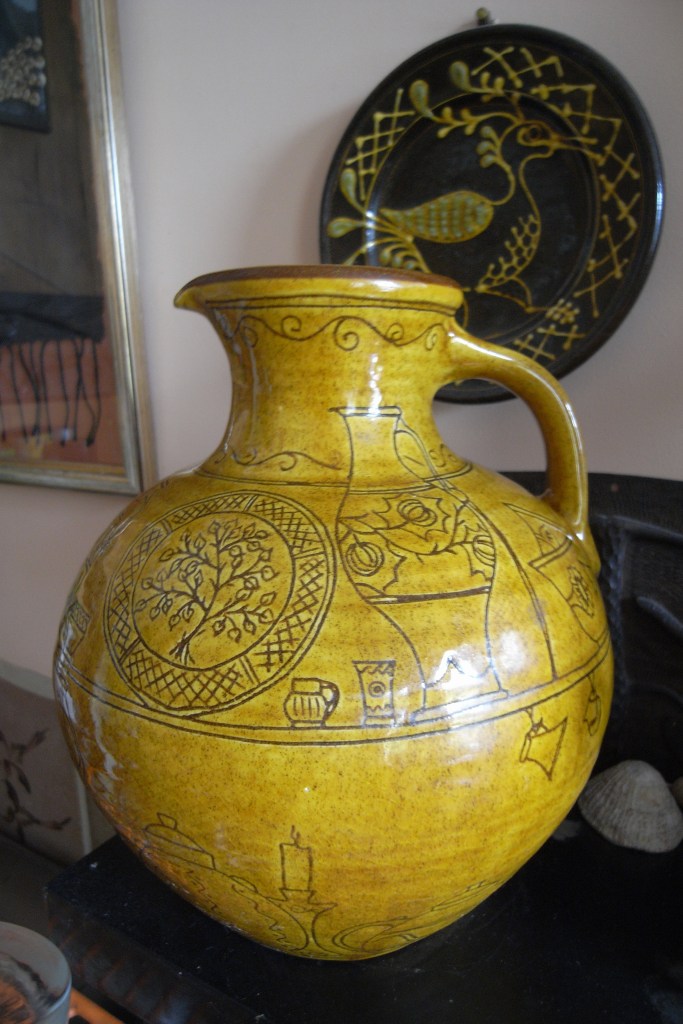 Alison – Well…. Jugs have always fascinated me because they are so absolutely useful and incredibly diverse. And I’ve got a collection in this kitchen ranging from the most banal to the most sophisticated, and I’d say what is sitting there in front of us is on the high sophistication bracket…..