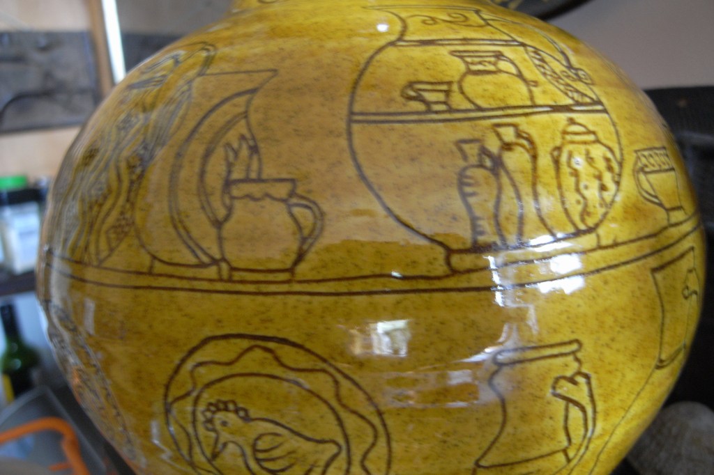 First of all it’s a very difficult glaze and secondly the very fine artist potter called Hannah McAndrew who made it, has used it as a vehicle for kind of turning it into a kitchen shelf of other pots. Pots in pots, and she has done it with quite a lot of care, and I don’t think it is very easy to do. So I purchased it from her one Spring Fling, about ten years ago. Pure ornament I’m afraid.