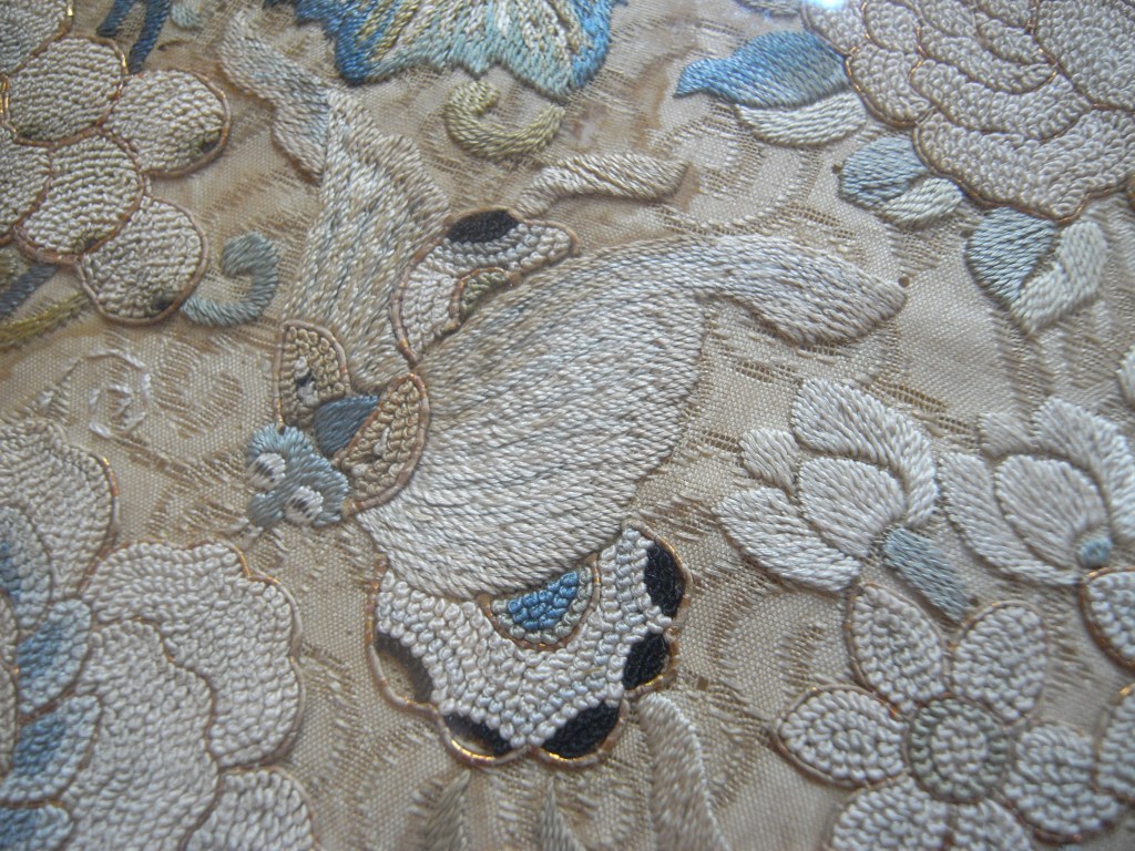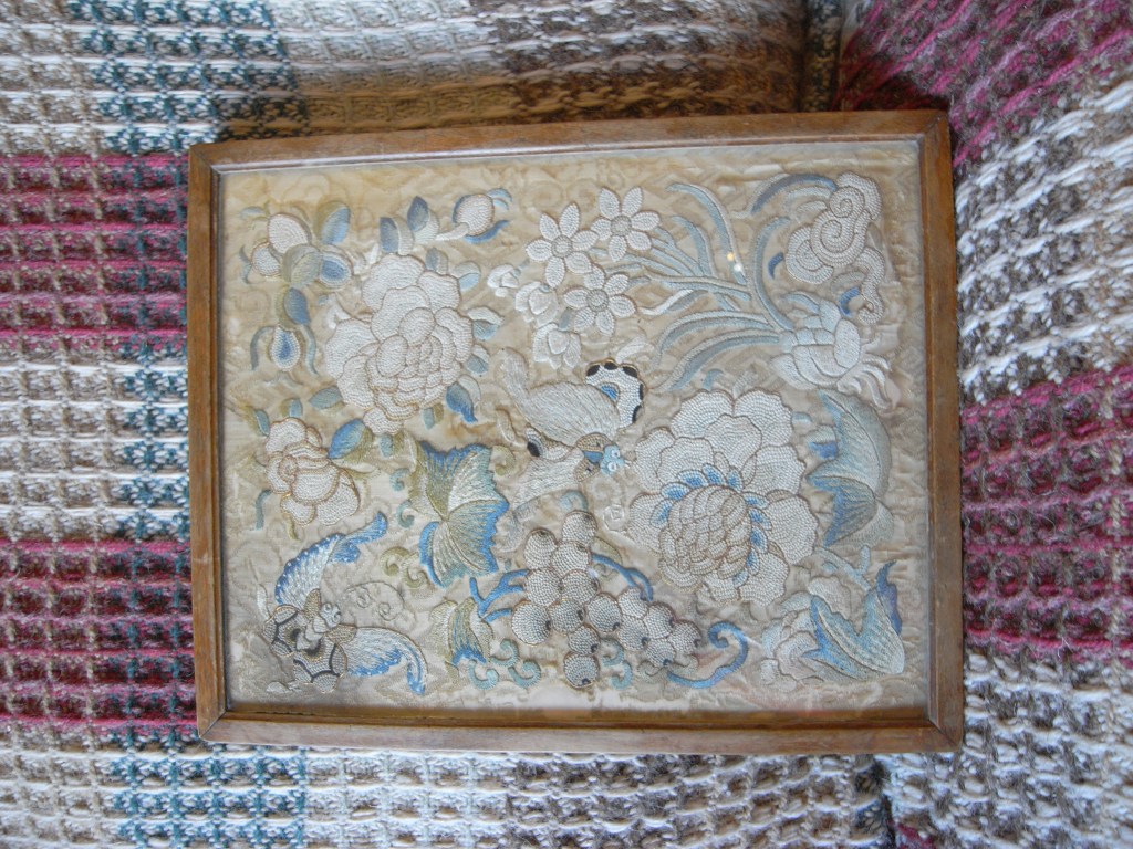 The object itself has very few clues except that it comes from Old Street in Liverpool, which means that is from quite a far back generation. [framed in Old Street Liverpool]. It’s probably a Japanese piece of needlework, and may well have come back from any one of these world tour things people did. So it could have been Hannah [grandmother], or my grandfather.