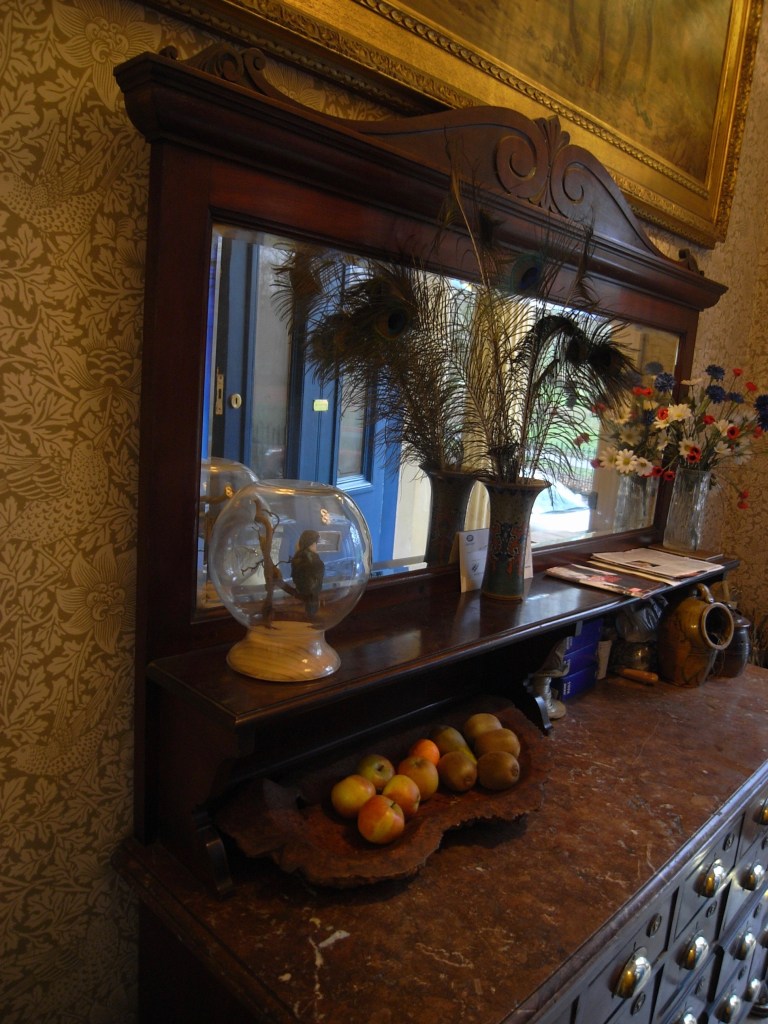 And the mirror added a bit of light to the dark basement room because of the reflection. [Alison says in background that she thinks it would have been ‘de-luxe’, and Anthony says, no, rather utilitarian] A lot of it is pine inside, with mahogany facings.